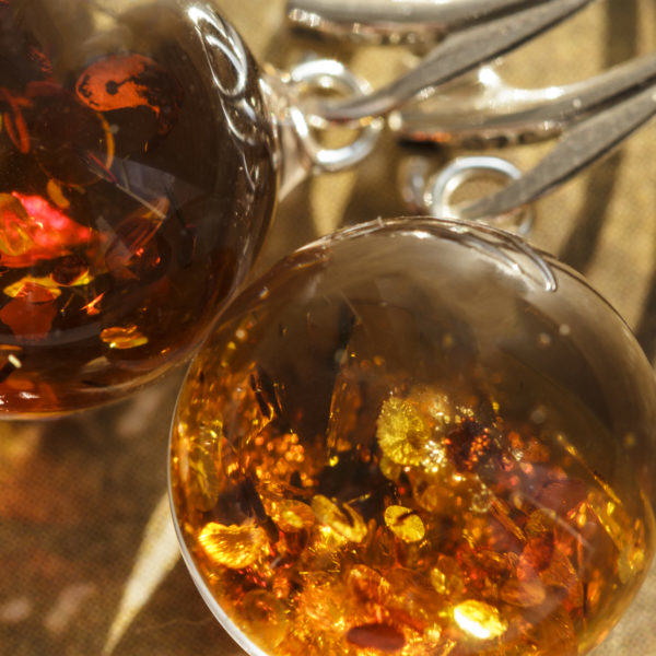 Náušnice s jantarovými částečky